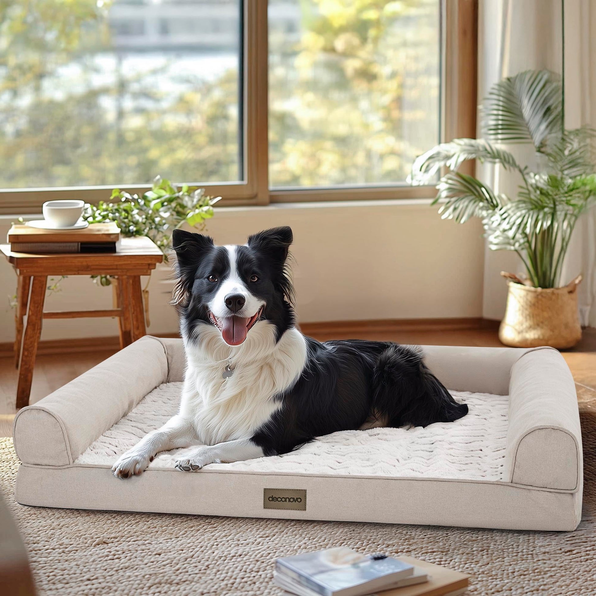 Luxury Velvet & Linen Dog Bed with Armrest